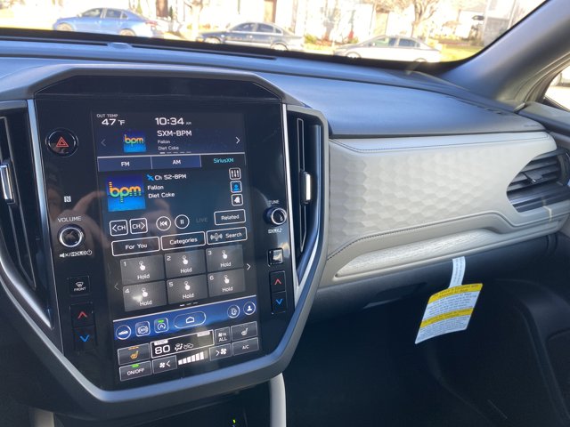 - HARMAN/KARDON AUDIO & NAVIGATION & RAB -inc: Reverse Automatic Braking (RAB) System Radio: Subaru 11.6 Multimedia Navigation System valet mode integrated center information display AM/FM stereo HD Radio multi-touch gesture high resolution display screen voice activated controls voice activated navigation Bluetooth audio streaming and hands-free phone connectivity w/SMS text messaging connectivity (refer to subaru.com for cell phone compatibility) TomTom navigation software w/What3Words iPod control capability SiriusXM w/360L (4 months free trial/subscription required after) SiriusXM Travel Link (3 years free trial/subscription required after) SiriusXM Live Traffic (1 year free trial/subscription required after) smartphone integration for Android Auto and Apple CarPlay w/full screen view and wireless connection USB and Over The Air (OTA) audio system update TomTom navigation system update w/USB/Map Over The Air (MOTA) (3 years free map updates) steering wheel control