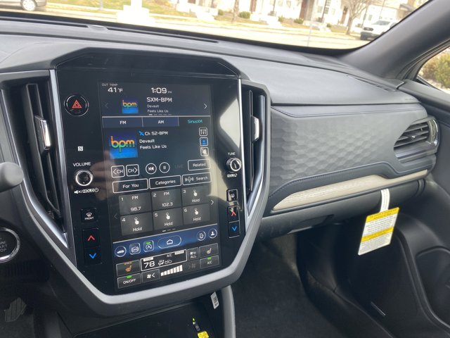 - HARMAN/KARDON SPEAKER SYSTEM & NAVIGATION & RAB -inc: Reverse Automatic Braking (RAB) System Radio: Subaru 11.6 Multimedia Navigation System valet mode integrated center information display AM/FM stereo HD Radio multitouch gesture high resolution display screen voice activated controls voice activated navigation Bluetooth audio streaming and hands-free phone connectivity w/SMS text messaging (refer to Subaru.com for cellphone compatibility) TomTom navigation software w/what3words iPod control capability smartphone integration: Android Auto and Apple CarPlay w/full screen view and wireless connection USB and Over The Air (OTA) audio system update USB and Map Over The Air (MOTA) TomTom navigation system update (3 years free map updates) steering wheel controls harman/Kardon speaker system w/11 speakers and 576 watt equivalent maximum output amplifier 3.5mm auxiliary input jack and roof mounted audio and satellite antenna and SiriusXM Travel Link (4 months free trial inc