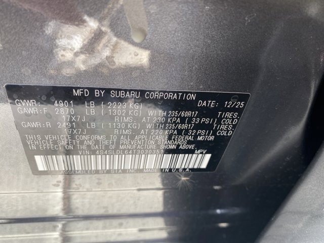 - VIN : 4S4SLDL64T3030351