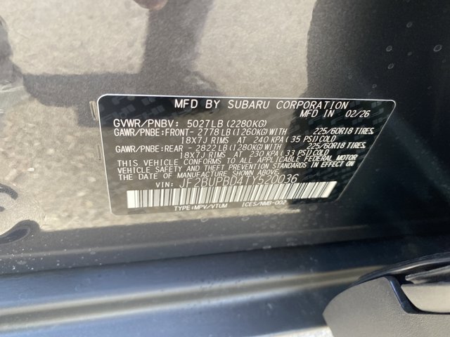 - VIN : JF2BUPBD4TY520036