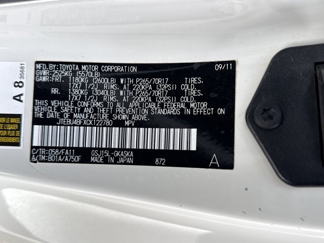 - VIN : JTEBU4BFXCK122780