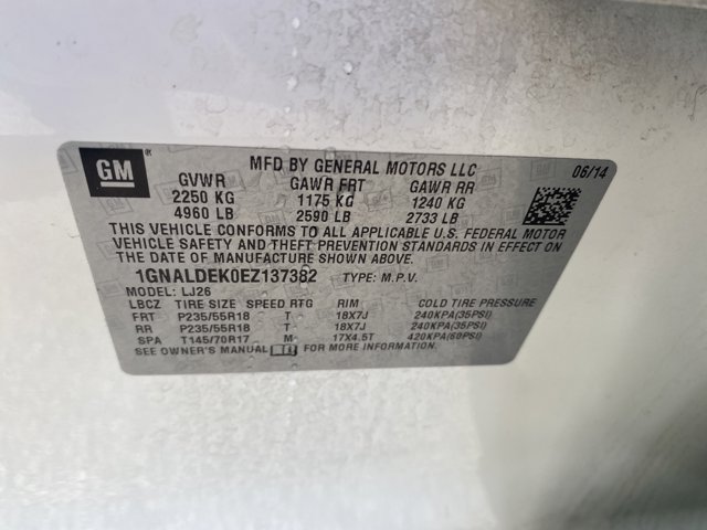 - VIN : 1GNALDEK0EZ137382